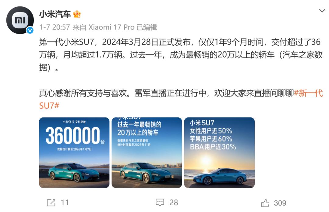 In a longer product cycle, the new - generation SU7 is closer to a mid - cycle facelift. Lei Jun mentioned the keyword "stability" several times during the live broadcast. In his view, the current sales performance of the SU7 is solid enough, and it is not necessary to make major changes to the original product logic. In contrast, it is more important to make up for the shortcomings while maintaining continuity.