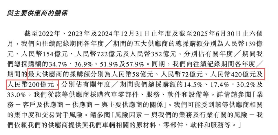 According to SERES' own disclosure, between 2022, 2023, and 2024, SERES paid 75 billion yuan in procurement fees to its largest supplier. And who is this largest supplier? No need to guess. There is no other than Huawei. If we include the procurement fees in 2025, SERES has paid over 100 billion yuan to Huawei in total. In the first half of 2025 alone, SERES paid 20 billion yuan in procurement fees to Huawei.
