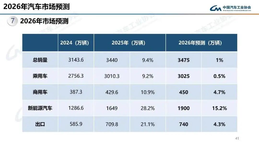 Domestically, Cui Dongshu, the secretary-general of the branch of the China Automobile Dealers Association, predicted that affected by the policy withdrawal, the sales volume of passenger cars in 2026 will drop to 23.8 million vehicles, a 2.1% decline year-on-year. The China Association of Automobile Manufacturers also believes that if the policy continues to support, the market may maintain a 1% - 3% slight increase; if the situation is not good, it may remain stagnant.
