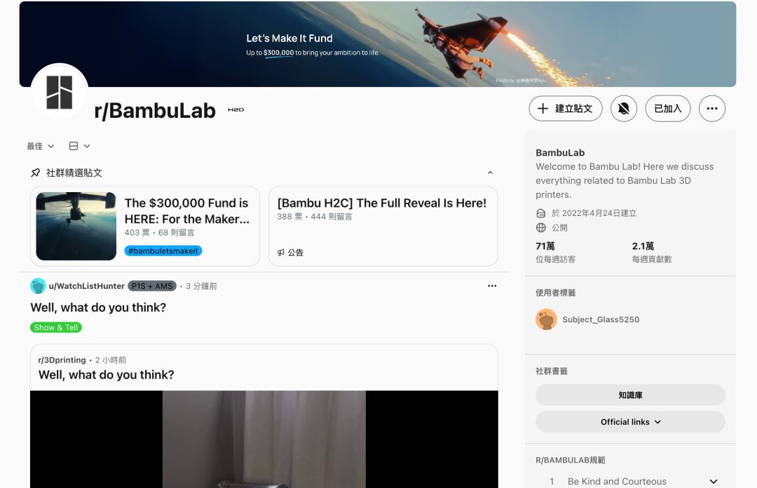 On the one hand, the products are innovative and user - friendly, leading to a rapid increase in sales. On the other hand, it has caught up with the rising trend of the 3D printing industry and platform ecosystems. Its target users highly overlap with those of platforms like Reddit and Discord. Bambu's official also attaches great importance to communicating with users. The founder has answered questions in the Reddit community.