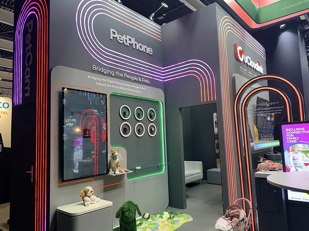 At the UCloudlink booth, you can experience the Pet Phone. This phone can be clipped onto a pet's collar, making it convenient for you to call your pet.