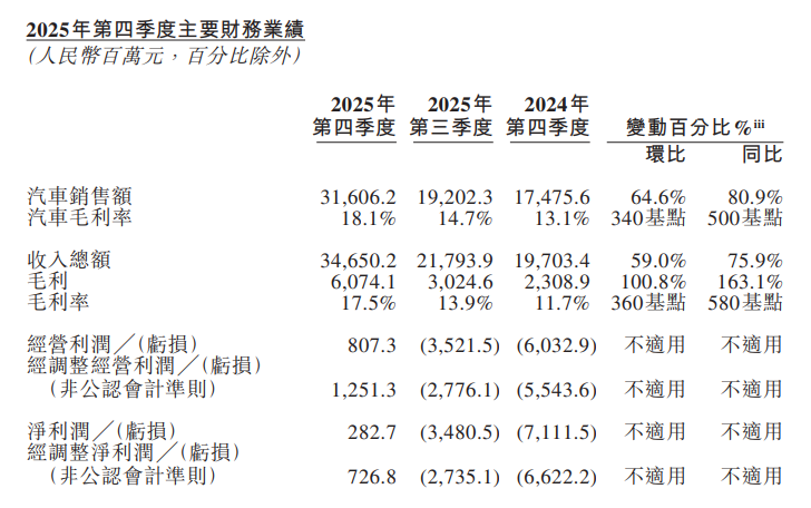In the fourth quarter, NIO's vehicle gross profit margin reached 18.1%, a year - on - year increase of 5 percentage points. The single - quarter gross profit totaled 6.074 billion yuan, a year - on - year surge of 163.1%, directly covering all expenses and finally achieving a profit.