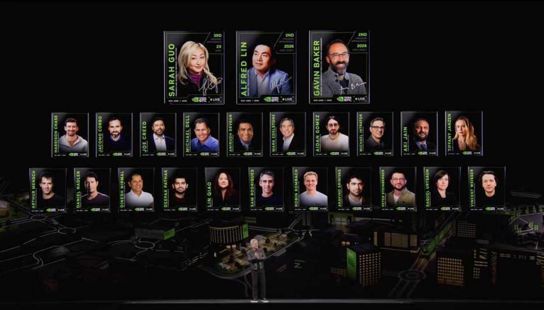 Thank you to the hosts of the pre-show, they did an amazing job. Sarah Guo, Alfred Lin, Gavin Baker—these three know technology incredibly well, and have a perfect grasp of everything that's happening. Of course, they also cover an extremely wide range of the technology ecosystem. And I want to thank all the VIPs I personally selected for today—this all-star team, thank you all for being here.