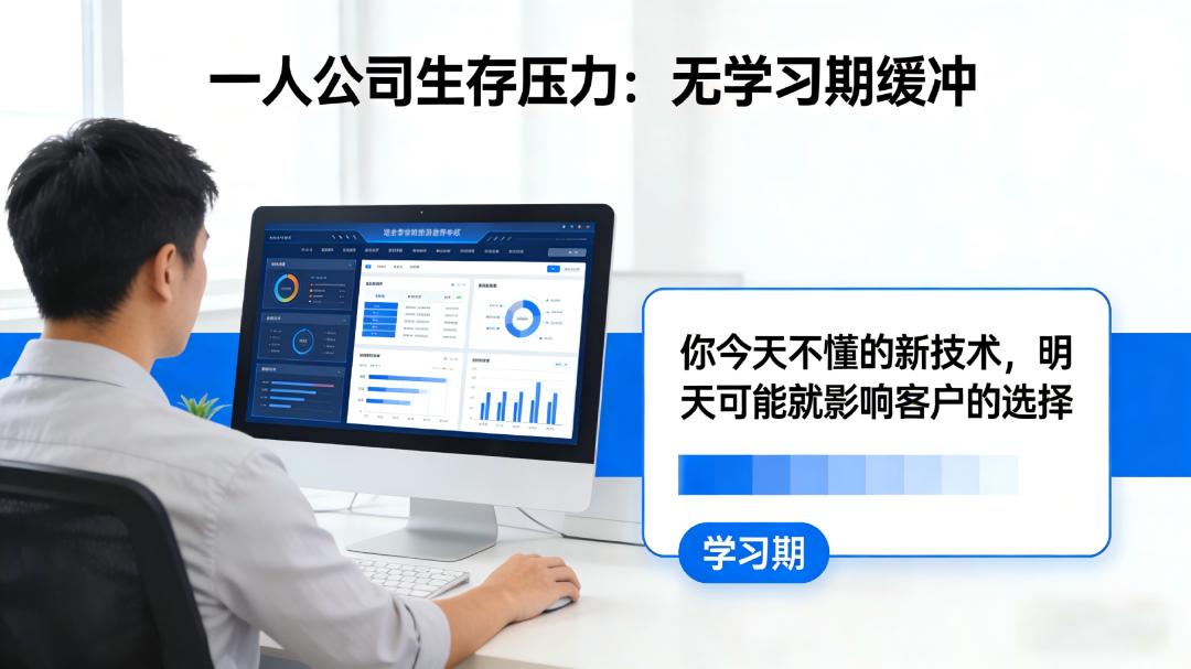 AI technology is evolving too rapidly. A project that was promising last year may be eliminated by the market this year. A one - person company has no "learning period" buffer - if you don't understand a new technology today, it may affect your customers' choices tomorrow.