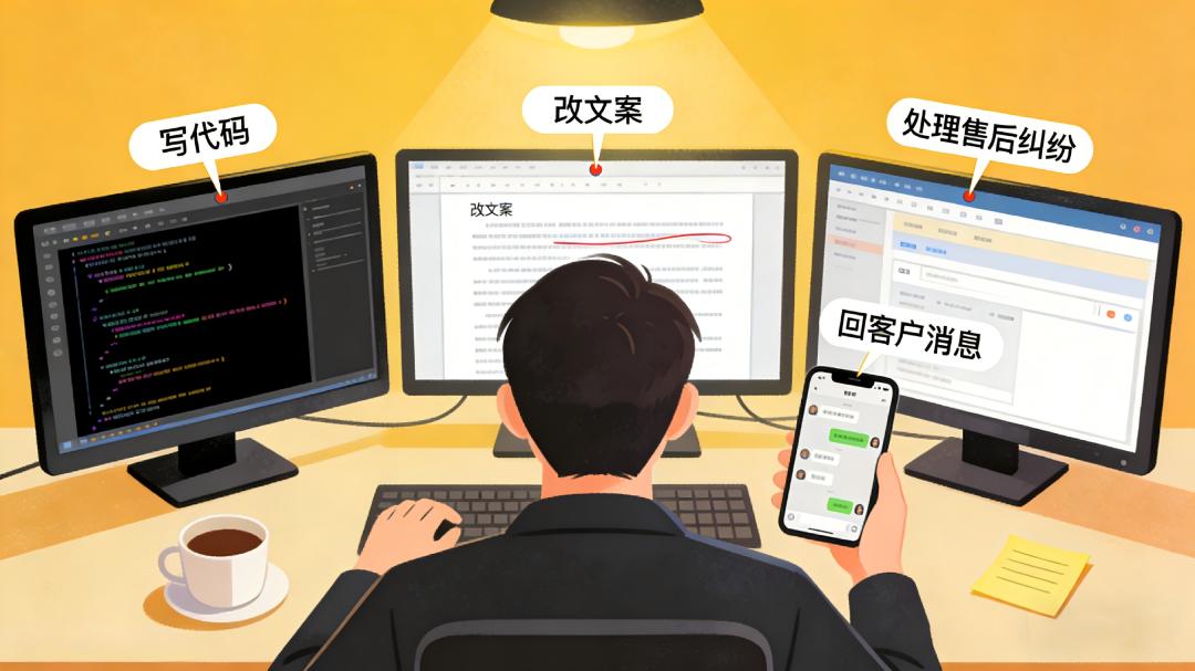 In an enterprise, a CIO's work mode is to set directions, assign tasks, and monitor progress. In a one - person company, all the "unassigned tasks" are yours. Writing code, revising copy, replying to customer messages, and handling after - sales disputes are all your responsibilities.