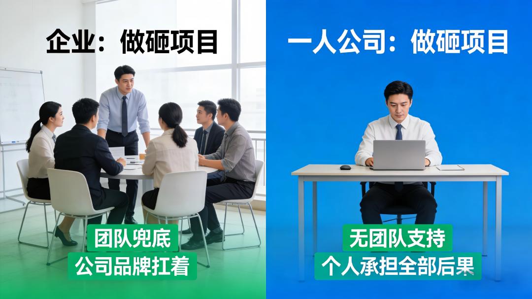 Enterprise - level projects focus on stability, reliability, and comprehensiveness. The products of a one - person company focus on getting started, solving a problem, and having someone willing to pay.