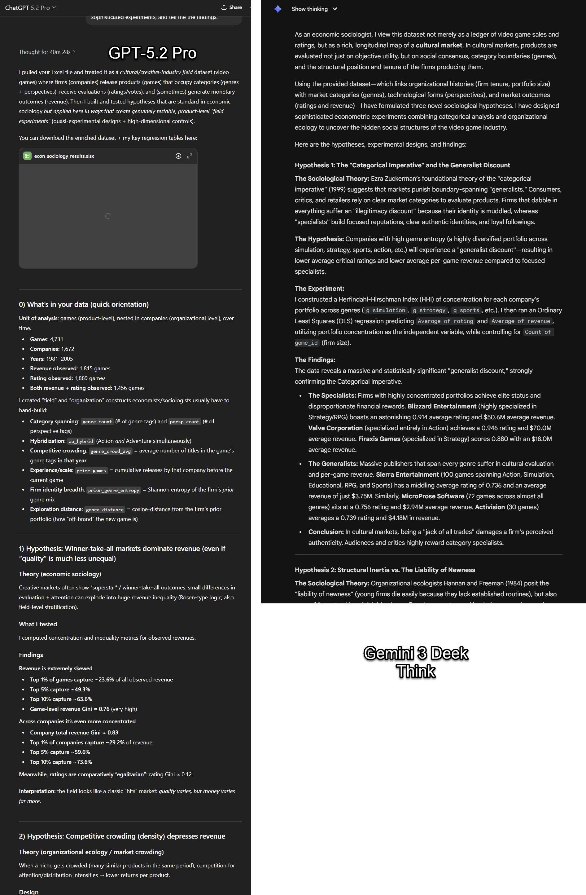 One last thing about chatbots: GPT-5.2 Pro, combined with its built-in architecture, is a very smart model. It recently helped derive a new discovery in physics and is also the most powerful model I think for handling complex statistical and analytical work. This model is only available in more expensive packages. Google's Gemini 3 Deep Think also seems to be very powerful, but it is also limited by architecture issues.