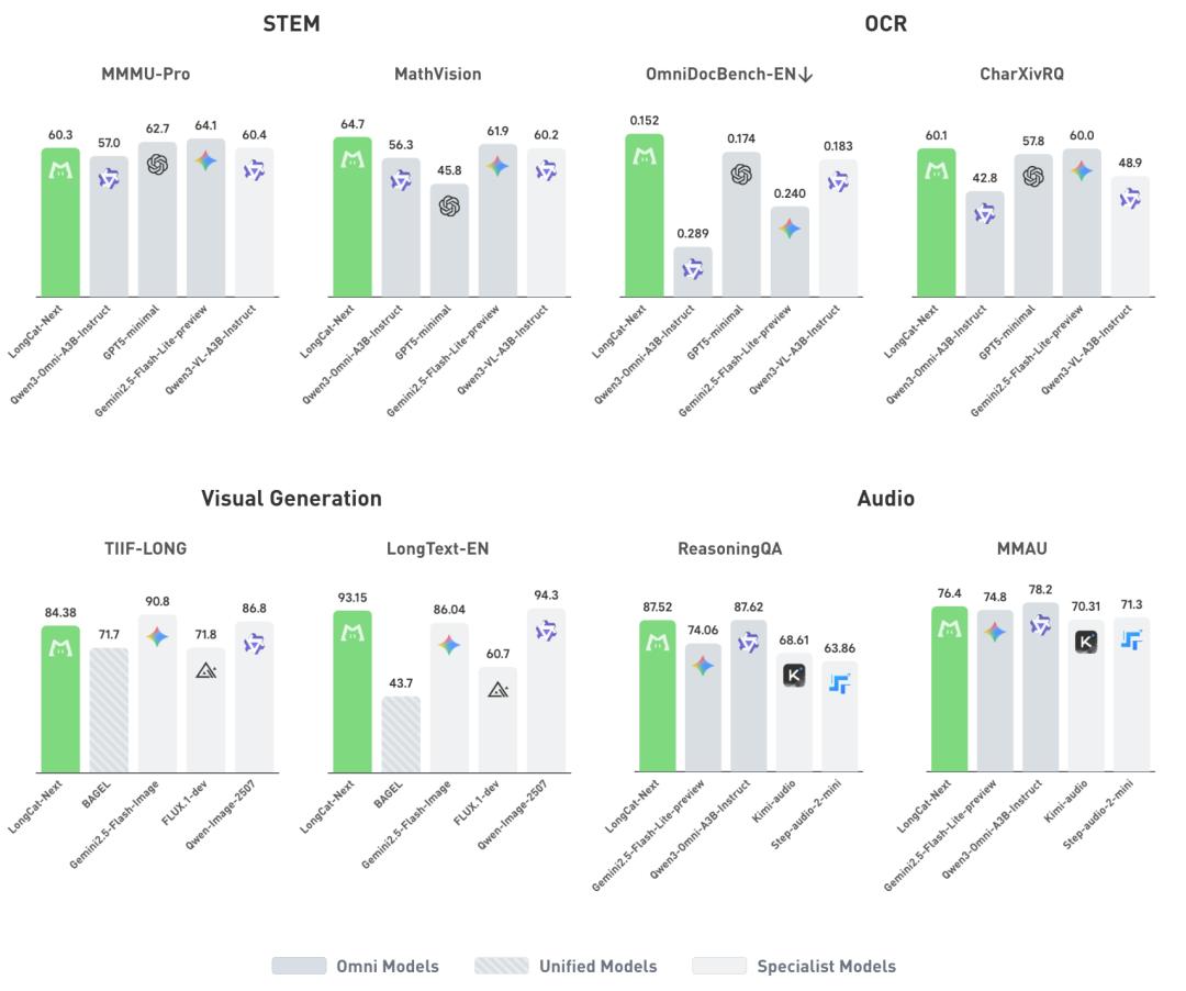 Beyond vision, LongCat-Next also incorporates audio into a unified discrete autoregressive framework.