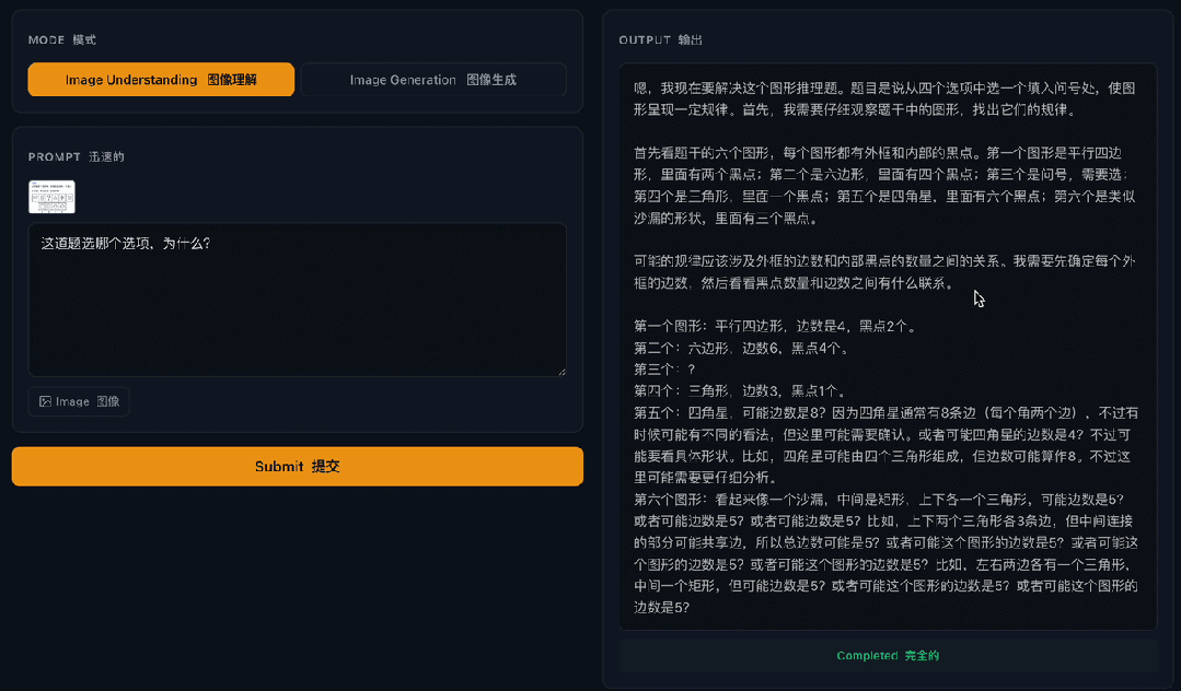 For example, when asked a classic logical puzzle in Sichuan dialect, LongCat-Next did not have recognition deviations or semantic losses. The speech signal in Sichuan dialect was accurately converted into semantic content for reasoning and smoothly entered the subsequent logical analysis process.