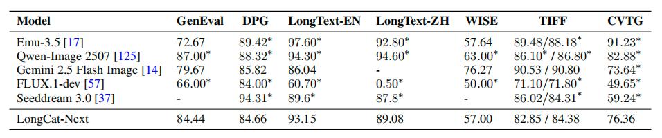In terms of image generation, its long - text understanding and text rendering capabilities have significant advantages over similar unified models, and the overall generation quality can compete with the dedicated text - to - image model Flux - dev.