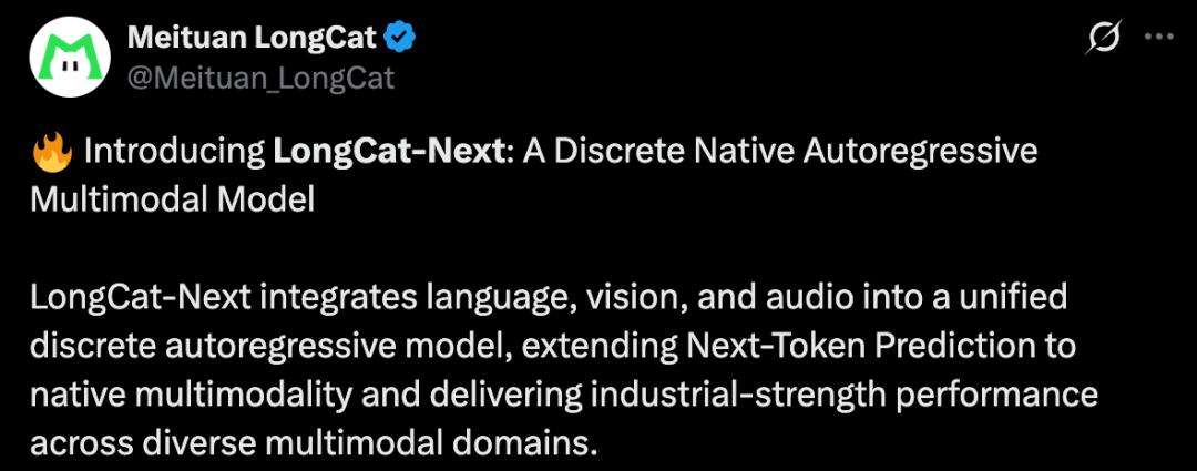 Recently, Meituan released a significant multimodal research achievement - LongCat-Next.