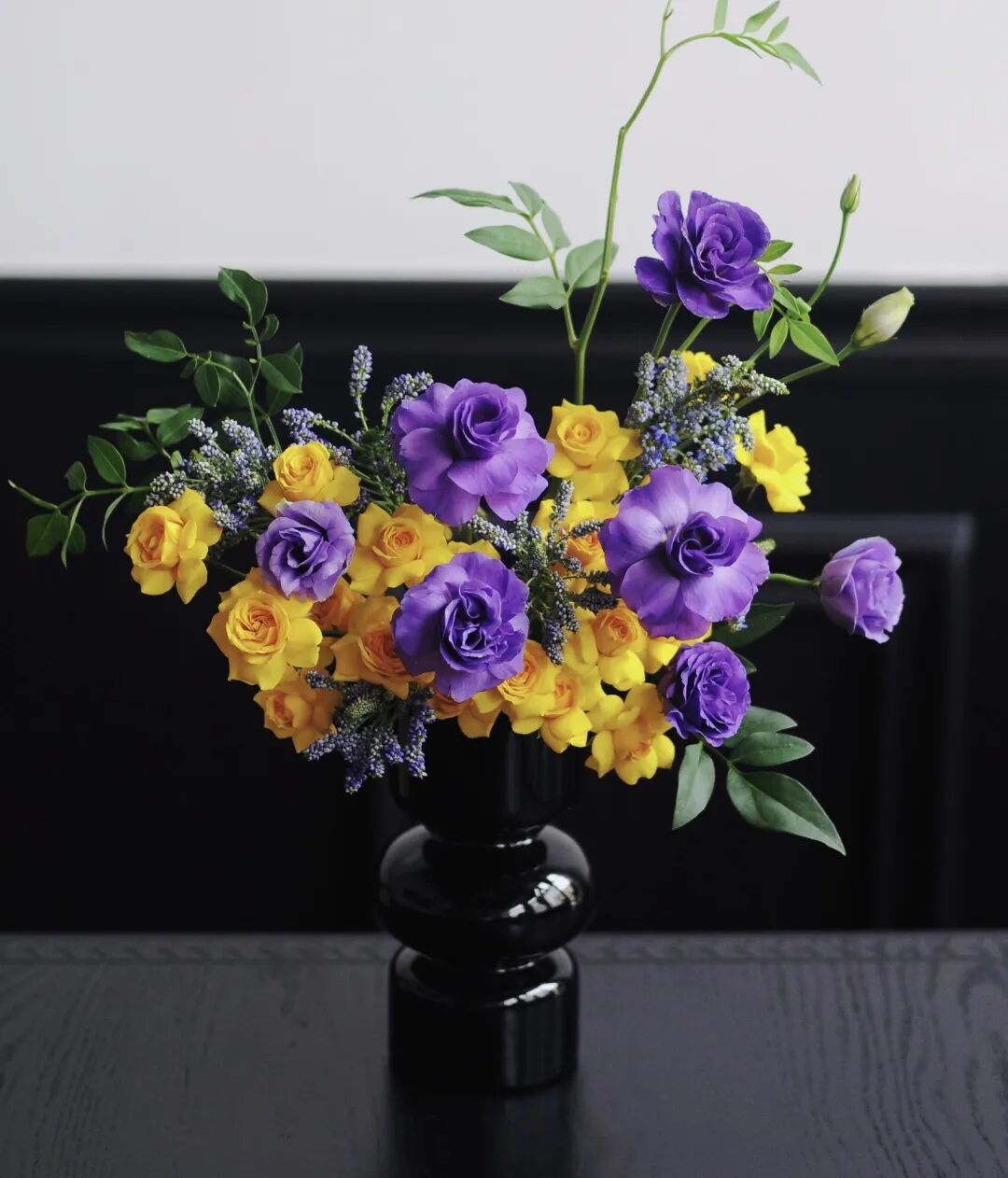 Prompt: Which plants are included in the flower bouquet in the picture, and what are their respective characteristics?