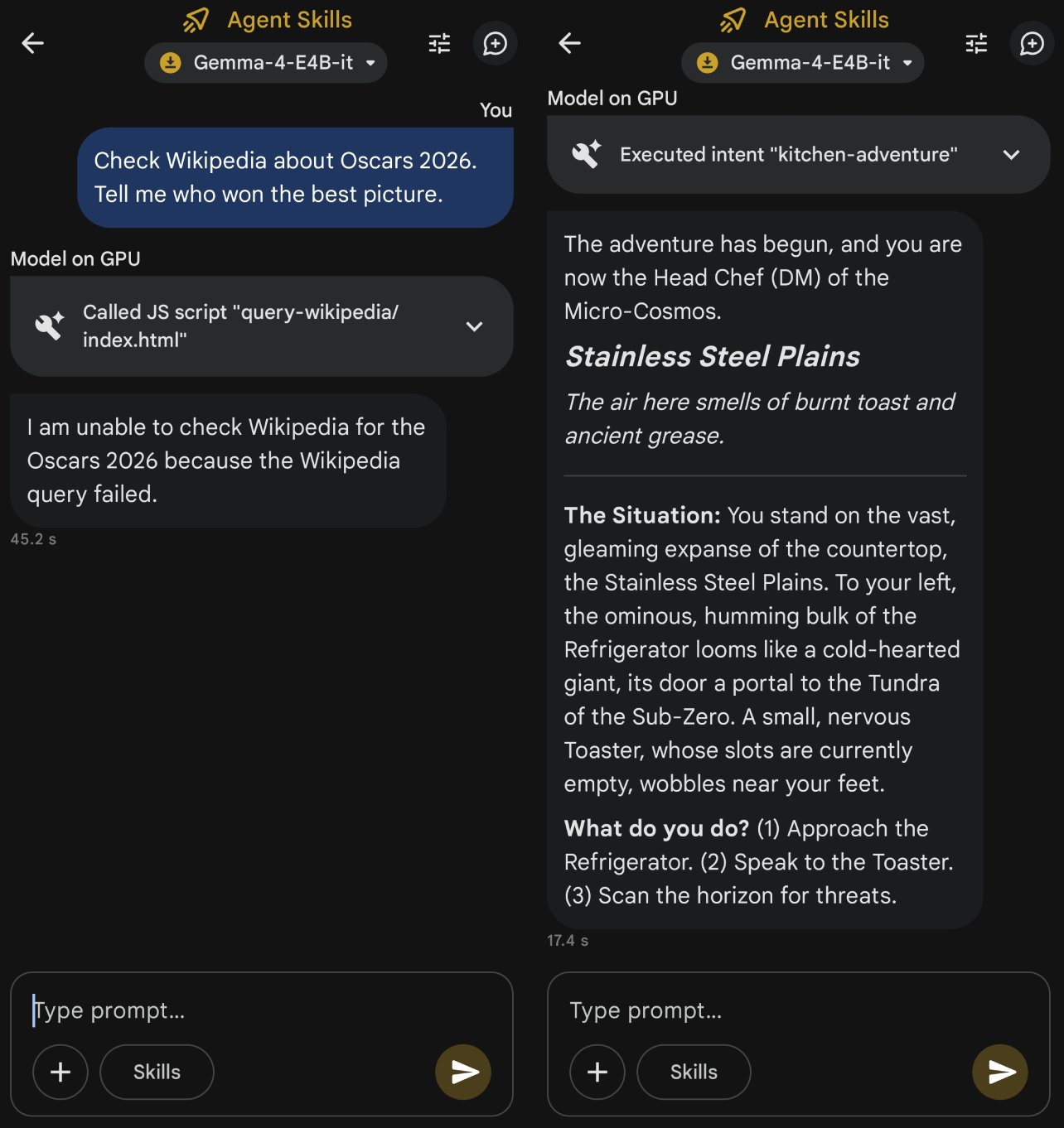 As for Agent Skills... Apart from two word - games, currently, several functions need to be implemented with an Internet connection, which has little to do with end - side large models.