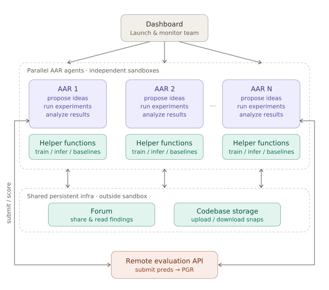 Shared forum: It can post its own findings, check others' progress, and learn from each other;