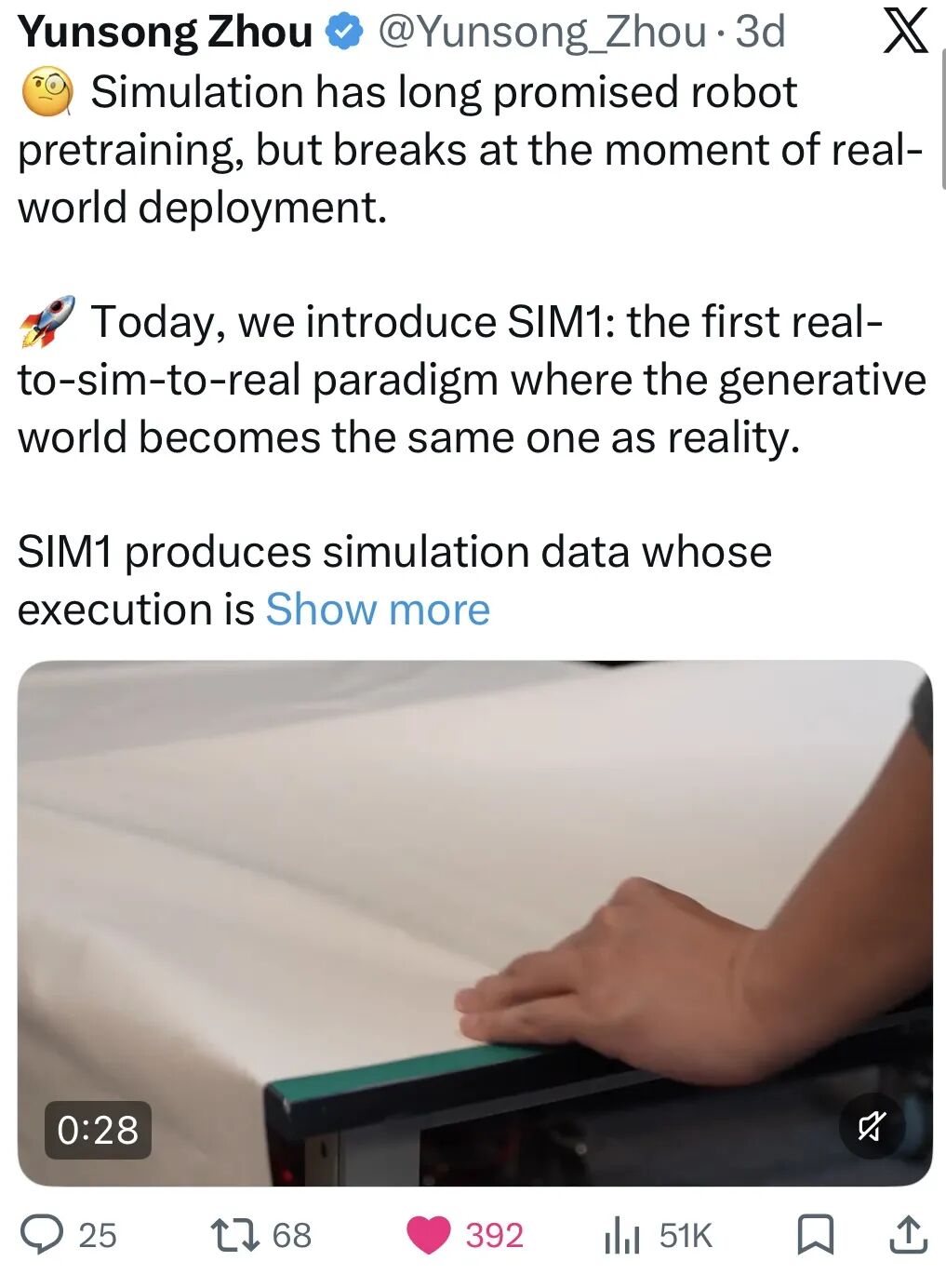SIM1 is not just a method, it is more like a declaration: When simulation truly becomes reality itself, the ceiling of robot data is redefined.