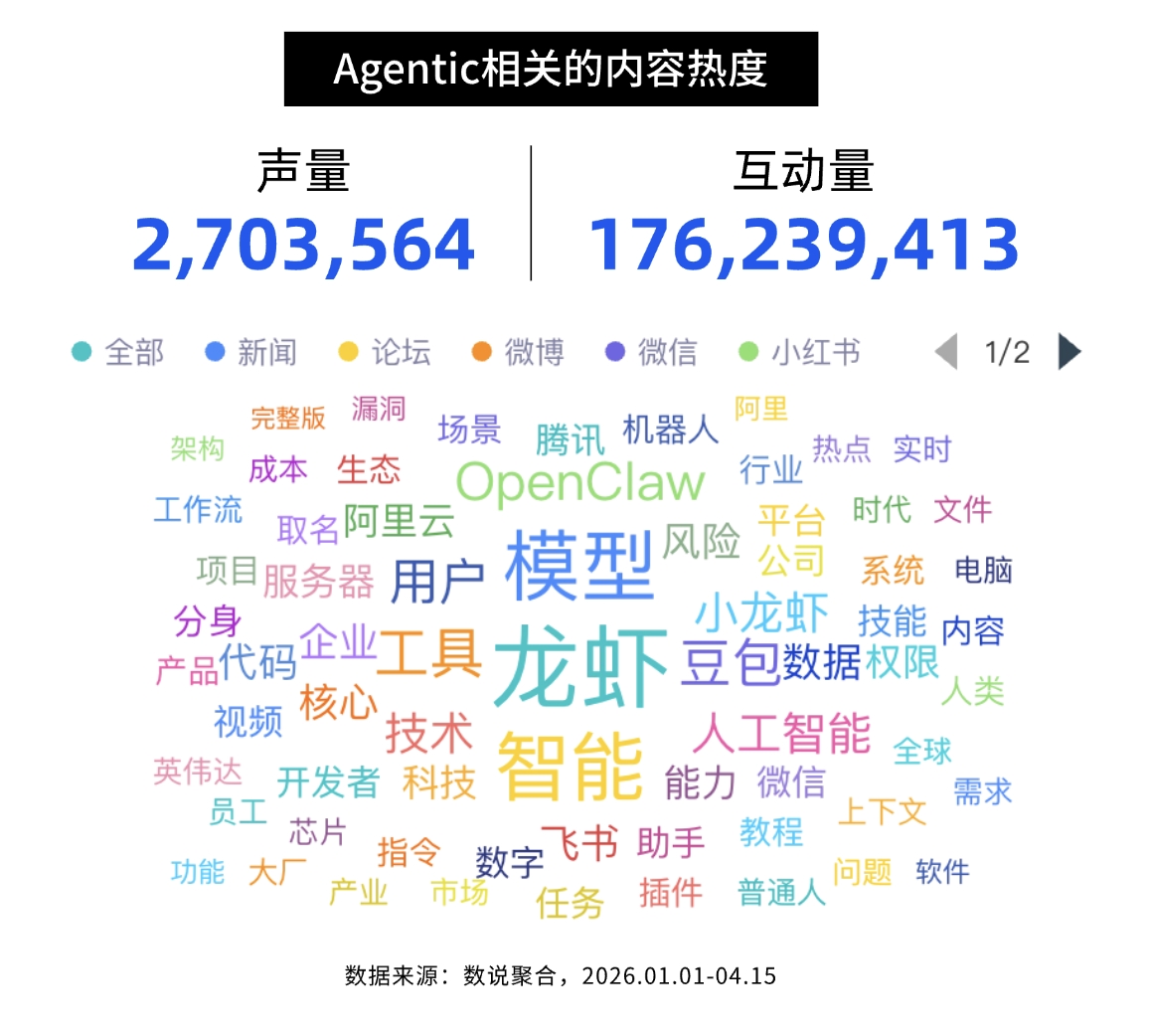 At the juncture of AI 2.0 moving towards AI 3.0, the era of a large - scale explosion of intelligent agent applications has arrived. According to the newly released "GenAI Industry Impact Matrix Map" by Xsignal, currently, AI R & D tools and AI efficiency - improvement applications are surging at astonishing compound annual growth rates (CAGR) of 515.74% and 394.98% respectively. Traditional production factors are being rapidly replaced. According to DataStory's aggregated data, the volume of content related to Agentic has exceeded 27.03 million in the past three months, and the interaction volume has exceeded 170 million.