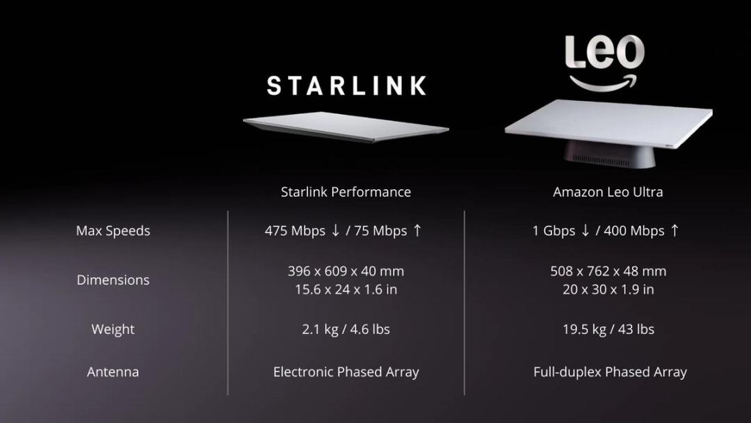 Facing this situation, Bezos's strategy is to avoid a head - on collision. Amazon Leo has set its orbital altitude between 590 and 630 kilometers, slightly higher than Starlink's 340 to 570 kilometers, providing a wider coverage area but with some signal strength loss. To compensate for this gap, the Leo antenna uses a larger phased - array area and a more efficient self - developed chip, ultimately achieving a theoretical performance that surpasses Starlink's peak rate in commercial products.