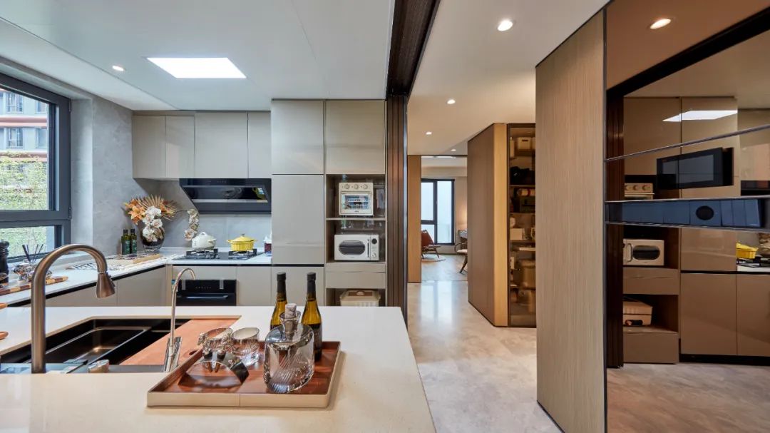 为了提升生活的质感,京华国贤府甚至通过大量深入细节的设计和服务,把室内高定精装等部分提升到了“艺术”高度。比如,仅一个冰箱的选择,项目就会考虑到冷藏、冷冻空间的配比,不同食材的存放天数,冰箱颜值和精准设计的吻合度等等,从玄关、客厅到主卧、卫生间、厨房进行定制设计、家电、五金的整体优化,从而保障每一处都美观、好用、耐用。