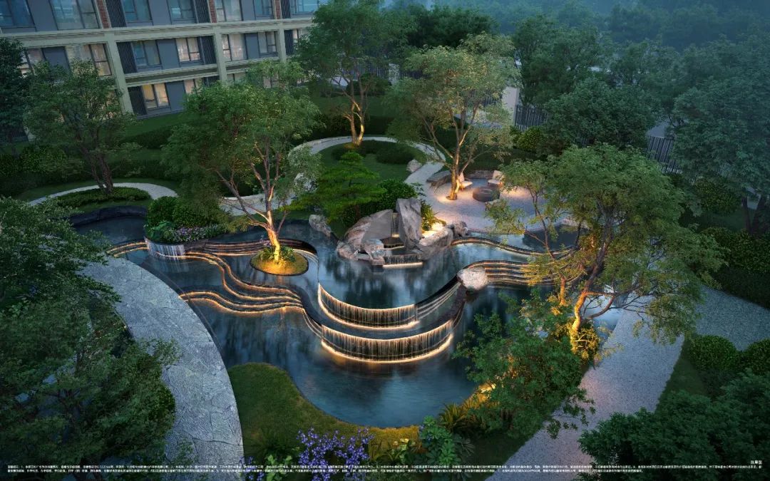 整个社区呈现出一种中轴线对称、多进深主庭院与围合组团庭院和谐共生,其中有高低落差的水景,注重趣味性的休闲空间,采自太行山的原石,以及象征自然生命力的全冠移植的大树,将家居生活融入山水美景。