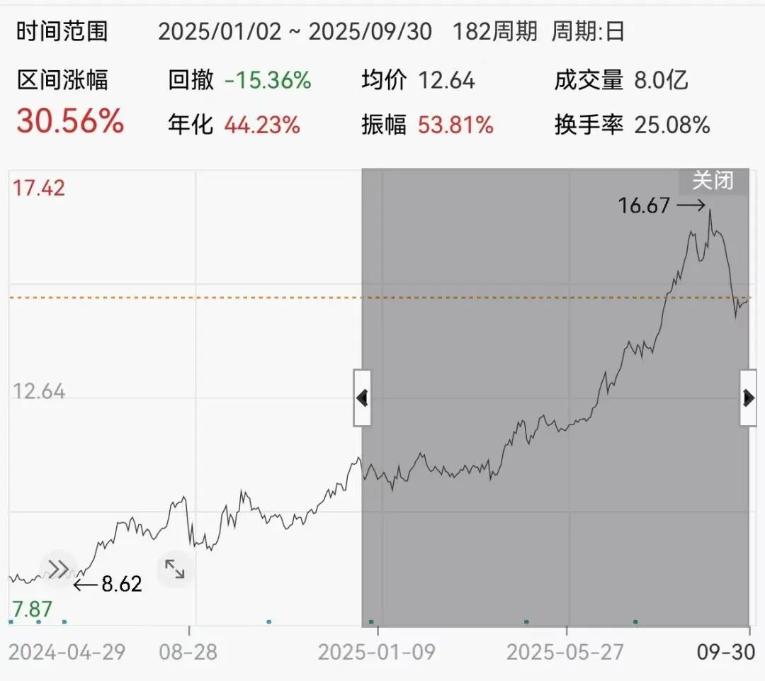 至9月30日,农业银行A股年内涨幅达30.56%,同期另外三大银行涨幅则在-1%-10%之间。
