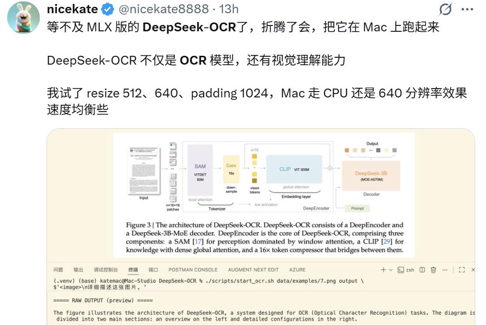 科技视频播主 NiceKate AI 将成功将其部署到了 Mac 上。
