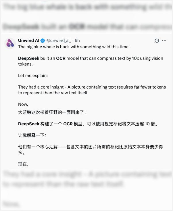 DeepSeek 又整出新东西来了,只用到原本十分之一 token,就能存下几乎一样的文字信息,这压缩比,香农看了都要流泪,冯·诺伊曼看了都要沉默。