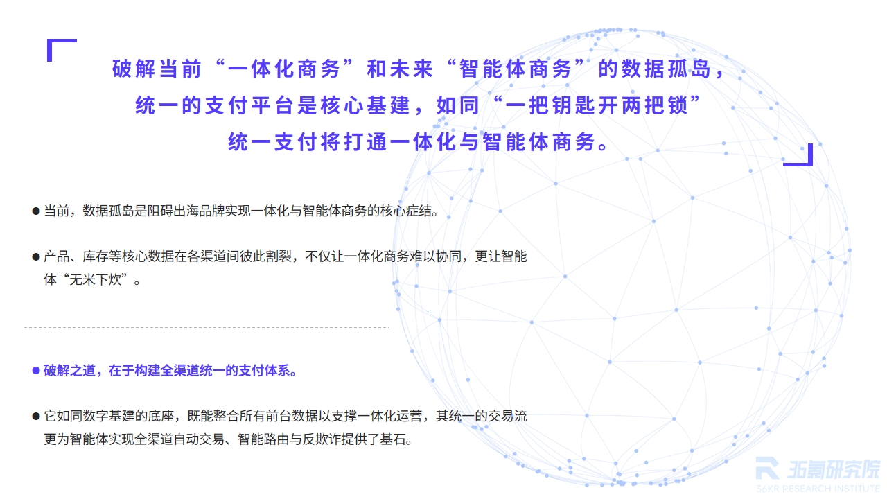 无论是实现渠道协同的一体化商务,还是构建情景感知的智能体系统,均依赖全维度数据的贯通与融合。其中,支付数据作为连接交易、用户与场景的核心枢纽,成为打通全链路的关键环节。通过构建“一体化与智能化支付”体系,品牌能够将支付环节从交易端点升级为数据中枢与策略节点,为业务一体化与决策智能化奠定基础。
