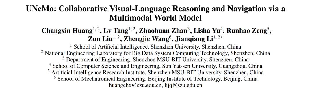 深圳大学李坚强教授团队最近联合北京理工莫斯科大学等机构,提出视觉-语言导航(VLN)新框架——UNeMo。