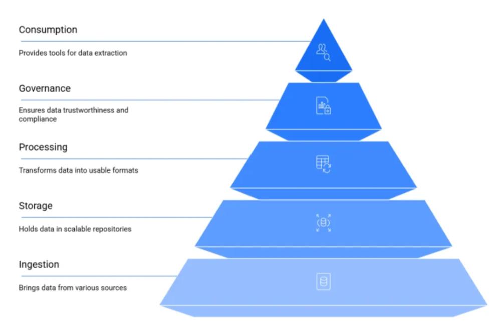 数据湖通过多个层级组织数据,这些层级协同工作,将原始信息转化为有价值的商业洞察。了解这些层级有助于组织设计高效的数据平台。