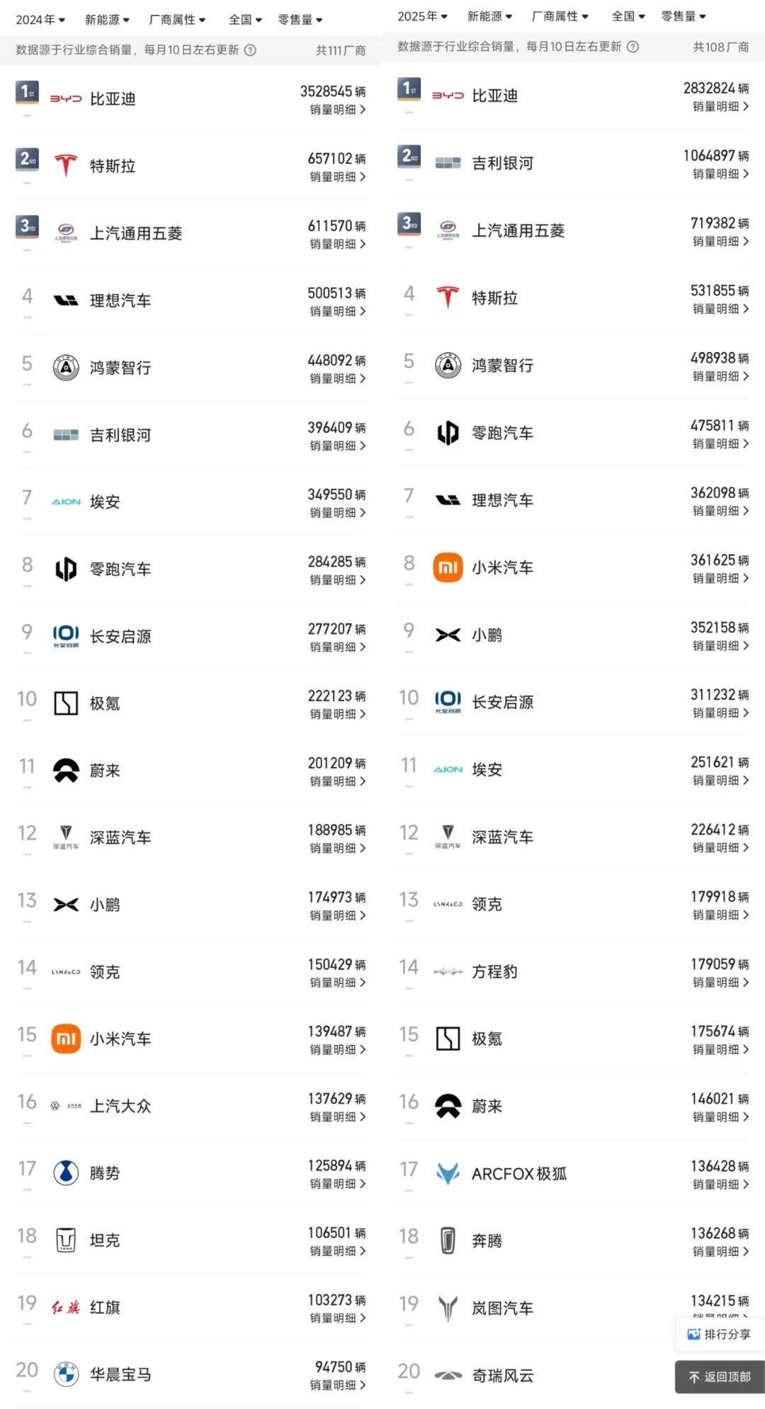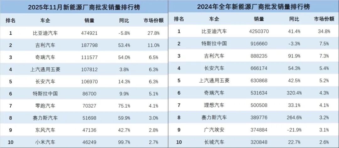奇瑞逆袭,理想跌出前十,2025新能源格局巨变