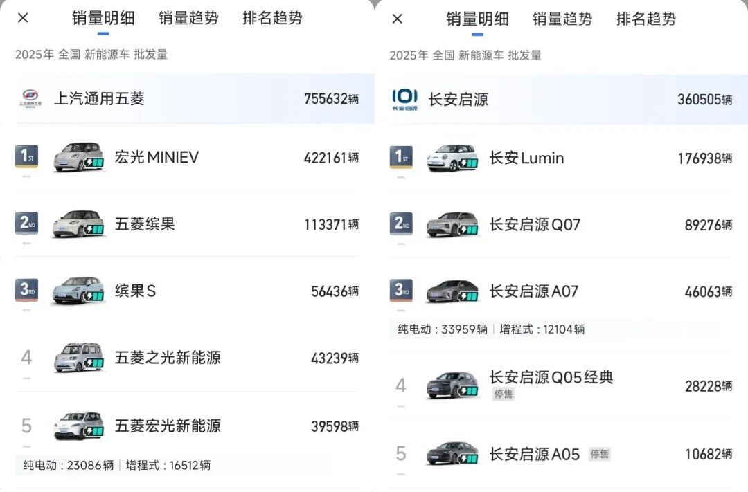 五菱品牌不用多说,在今年75.6万辆的总销量中,仅宏光MINI EV就占到了42万辆。长安方面,今年以来,深蓝和阿维塔的同比增速都超过了两位数,但距离年初制定的销量目标还有一定差距。最被人质疑的问题出在启源身上。