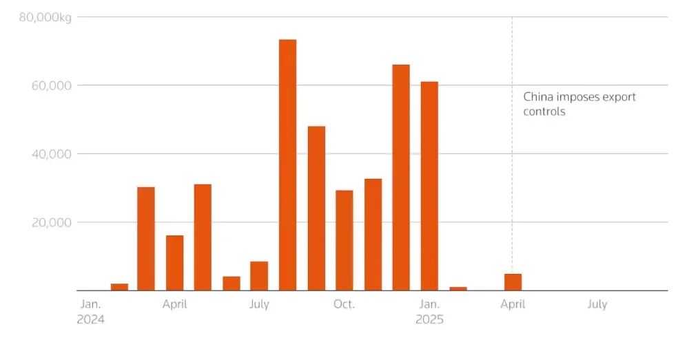 一位稀土贸易商表示,他们的库存已从200吨暴跌至仅5吨,而其他贸易商则报告称完全没有材料。
