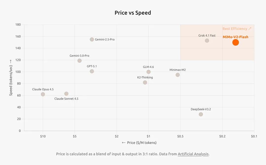 基于上述全链路工程化优化。模型成功在计算效率与显存利用率之间找到了最优解,在官方披露的“价格vs速度”坐标系中占据了显著的高能效生态位。