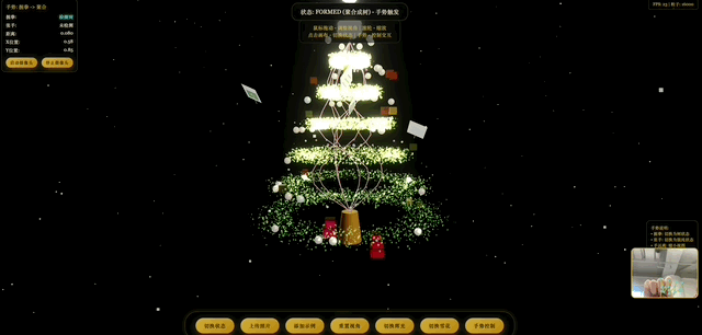 比如这是一个通过手掌的开合来控制的圣诞树,这次的提示词是中文的。