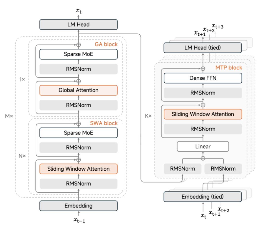 但是,SWA在提高效率的同时可能导致语义断层和长文迷失的问题,为此,MiMo-V2-Flash引入了可学习的注意力汇聚偏置(Attention Sink Bias)。