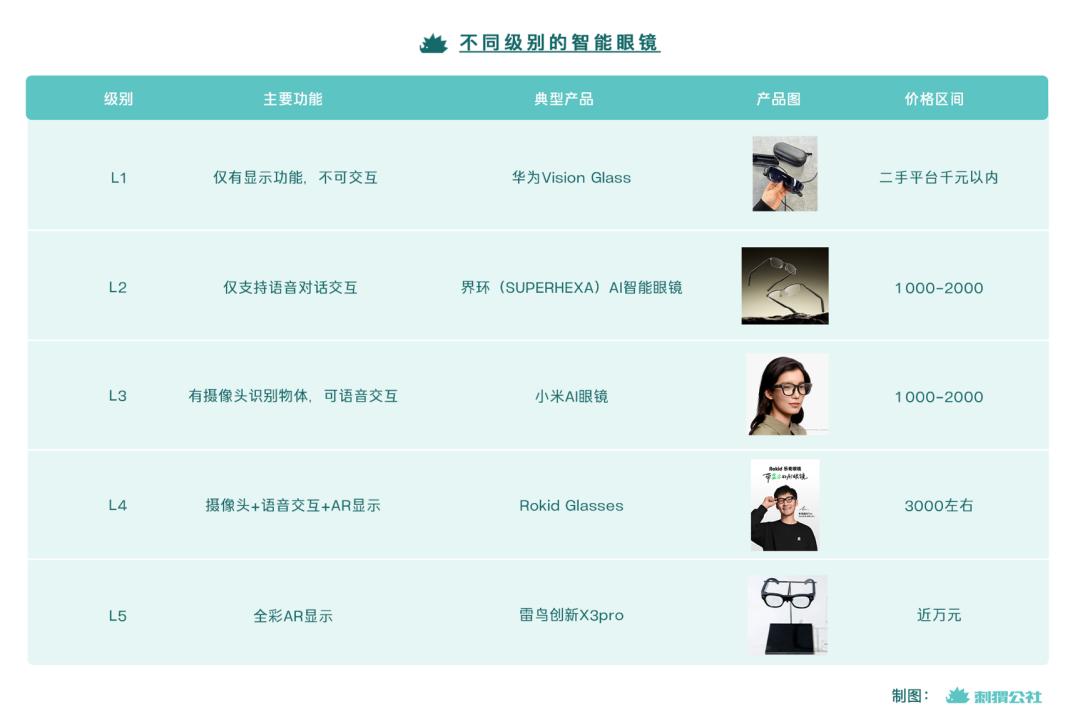 略显魔幻的是,在当前如果不对AI智能眼镜进行定义,就连统计这个品类到底有多少产品都很困难。刺猬公社(ID:ciweigongshe)认为,智能眼镜和智能驾驶一样,应当按照其智能程度从初级到高级进行分类。不同级别的智能眼镜,本质上甚至不是同一类产品。