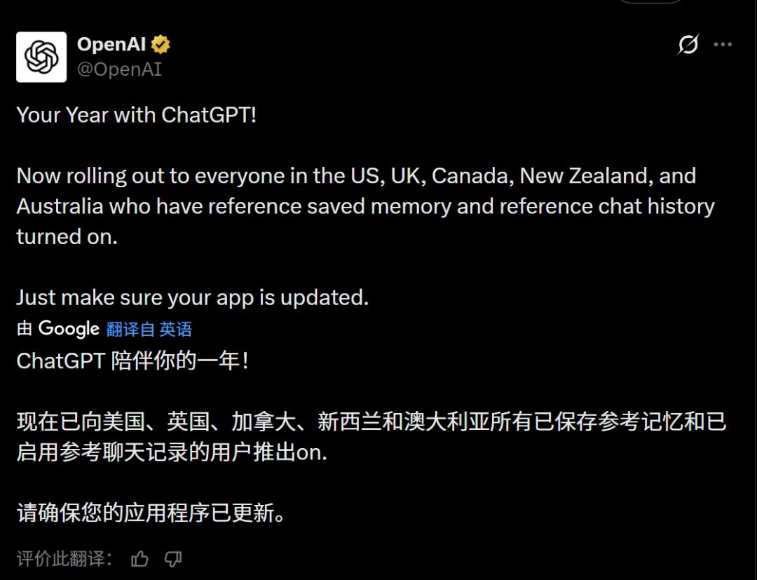 就在周一,ChatGPT 悄悄上线了一个新功能—— 「Your Year with ChatGPT」(你在 ChatGPT 的这一年)。