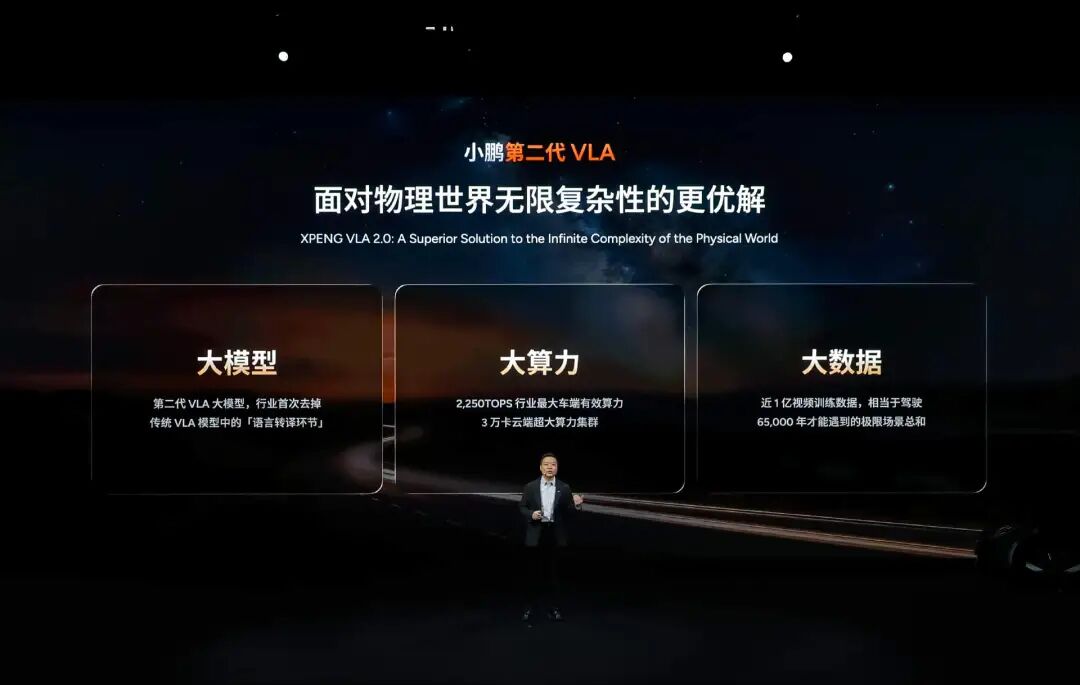 这背后是何小鹏投入了3万卡算力,四颗自研图灵A芯片的车端部署,以及720亿参数的基础大模型,烧了20多亿训练费用,动用了接近1亿个视频片段,涵盖全球各类极端长尾场景,相当于人类司机65000年的驾驶经验积累。才让何小鹏有底气的说出,小鹏第二代VLA能快速地带来接近L4的智驾体验。