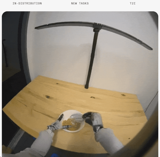 新任务数据集:由一组全新的任务构成,例如搅拌碗、抽纸、相对尺寸判断(选择更大的物体)、双手协同操作等,数据采集于真实世界中的简单背景场景。
