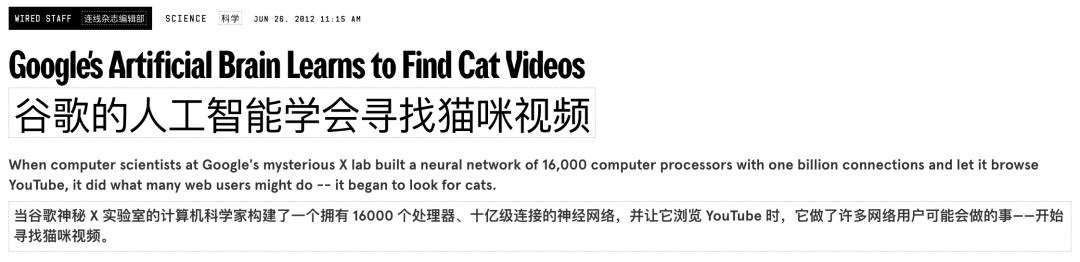 2012年6月,谷歌研究部门Google Brain公开了一个叫「谷歌猫」的项目成果。