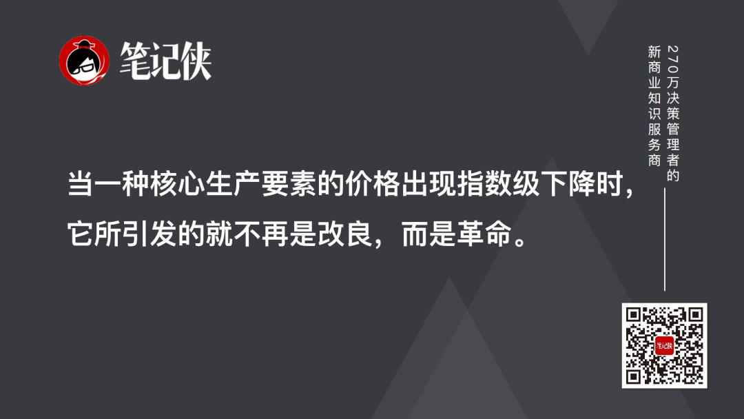 当一种核心生产要素的价格出现指数级下降时,它所引发的就不再是改良,而是革命。