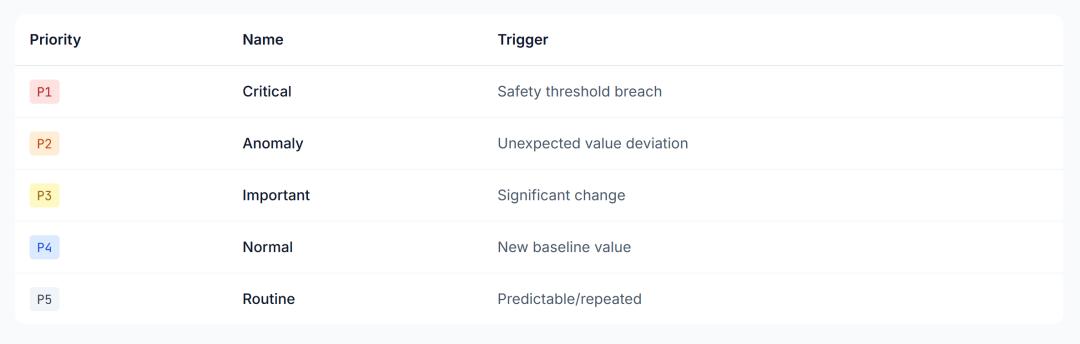 每条消息都按 P1(关键)到 P5(例行)进行分类,从而实现智能数据路由,并确保关键事件永远不会延迟