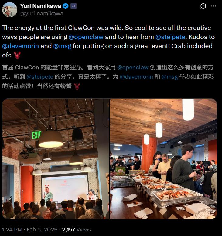 在旧金山举办的第一届ClawCon上,数百人挤爆了会场。