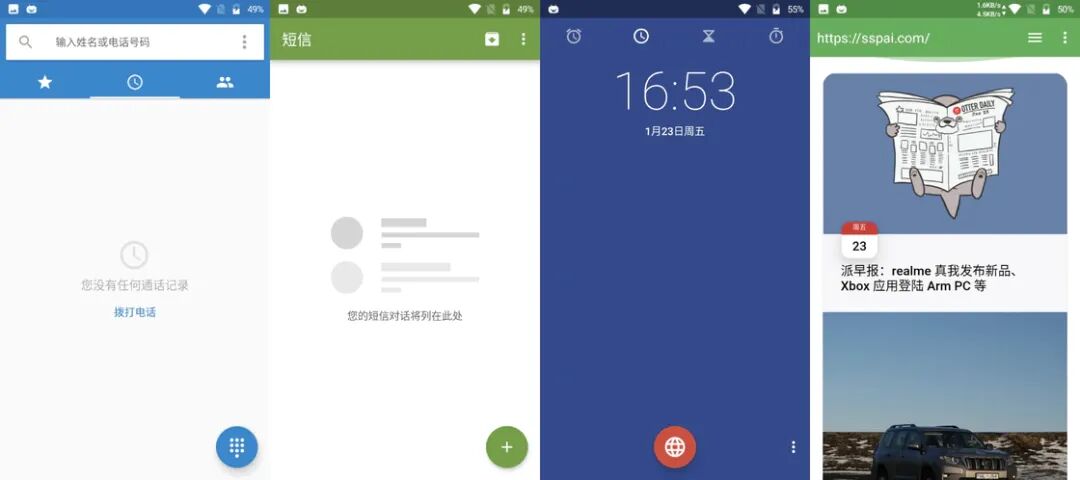 LineageOS 在曾经的类原生社区中以干净清爽的使用体验,轻量化的系统组件以及对机型长久的设备树维护跨度而闻名。但令人遗憾的是即便如此,发布于 10 年前的骁龙 400 仍然对安卓 11 的系统运行力不从心,即使是最简单的滑动操作都有比较明显的掉帧卡顿。不过我们仍然可以借此一窥 Material Design 最终章的模样。