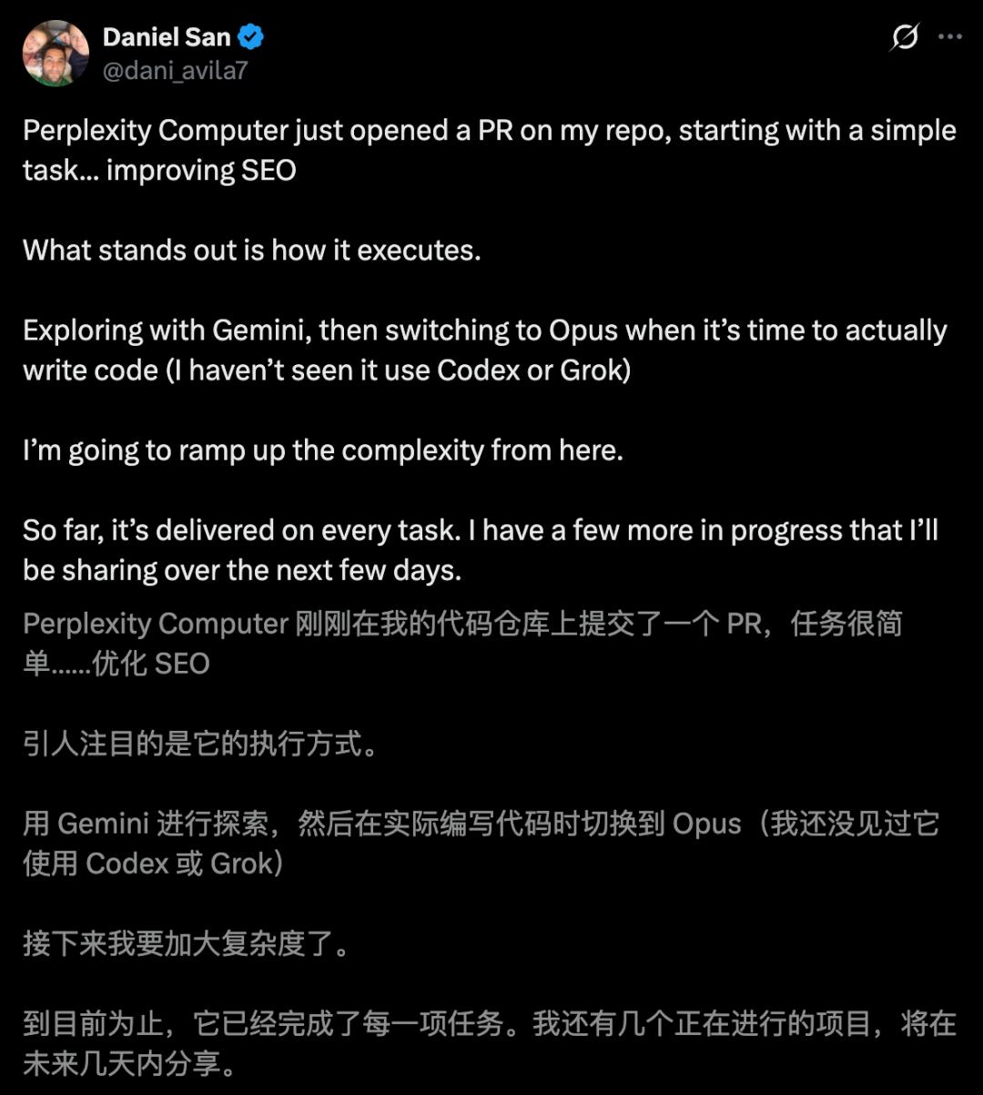 无论是清空待办事项、推进进行中的项目,还是开启一个新的业余项目,Perplexity Computer全部可以拿捏。