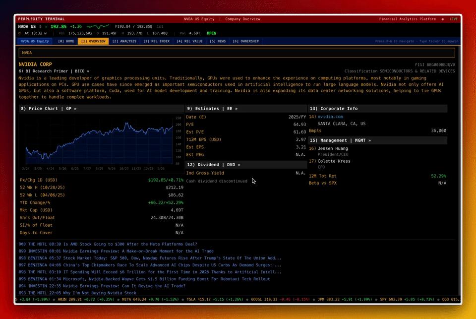 通过多模型协作,Perplexity Computer一次性构建出媲美Bloomberg的「实时金融终端」。