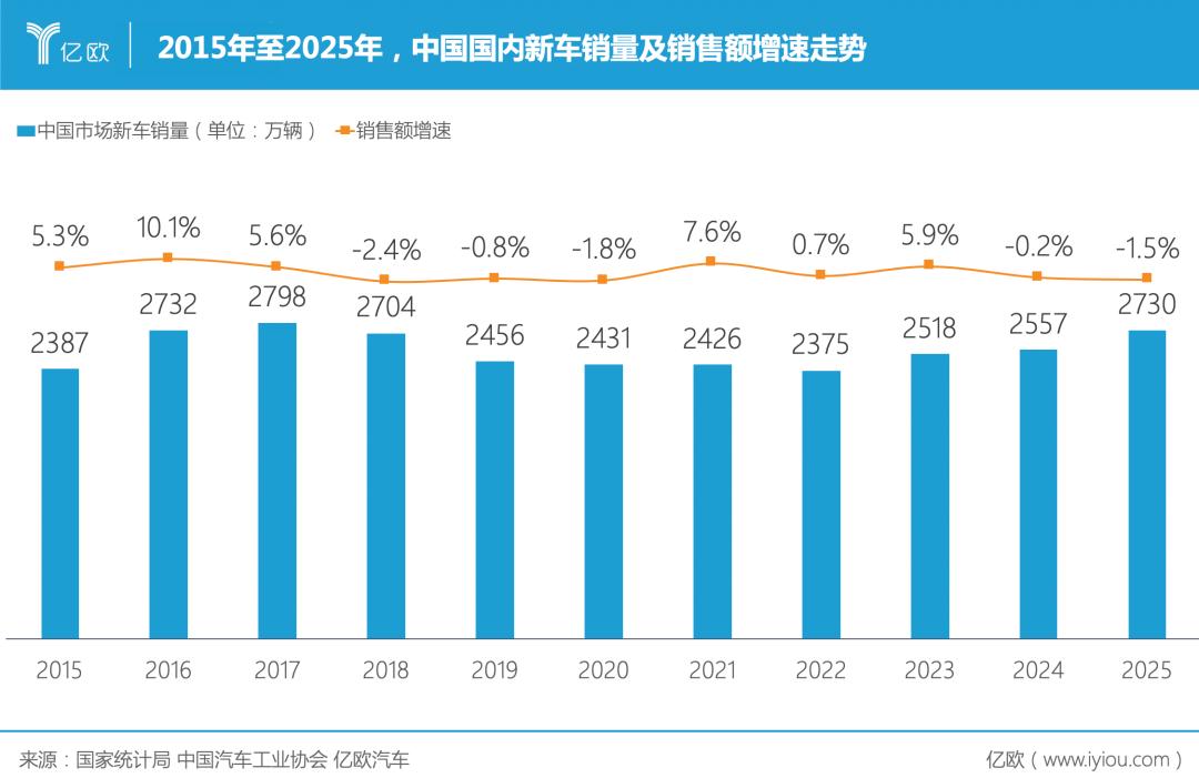 要知道,2025年中国国内新车销量增长了6.7%,达到2730.2万辆。