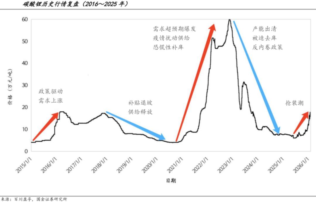 作为新能源汽车的另一大成本单元,动力电池也存在巨大的涨价压力。从2025年7月到今年1月,碳酸锂价格从7万元/吨,一路飙升至18万元。虽然春节后有所回落,但截至2月27日收盘,碳酸锂期货主力合约报价依然高达16.8万元/吨。