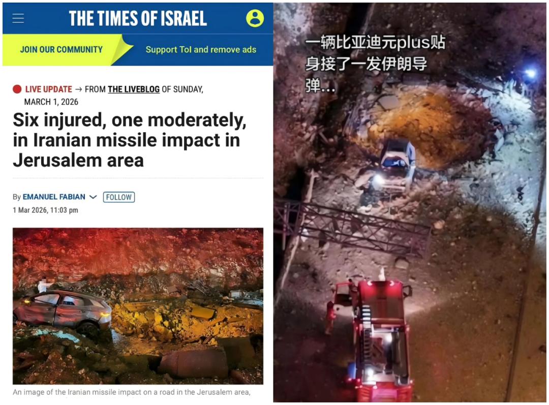 无独有偶的是,这两天全世界最热门的中东战场上诞生了全网最硬核的广告:一辆比亚迪元Plus贴身接了一发伊朗的导弹,车头受损严重、挡风玻璃全碎、安全气囊弹出。但神奇的是,电池没有起火、驾驶舱结构没有变形,甚至连车头大灯仍然亮着,车内六人只受轻伤、全部生还。