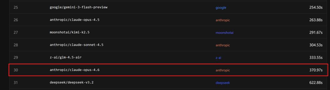 而Claude Opus 4.6的最新排名是30(M2.1是第22)。